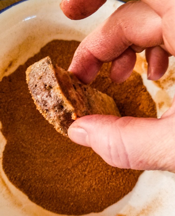 Then dip each one in the cinnamon and sweetener mixture bowl.
