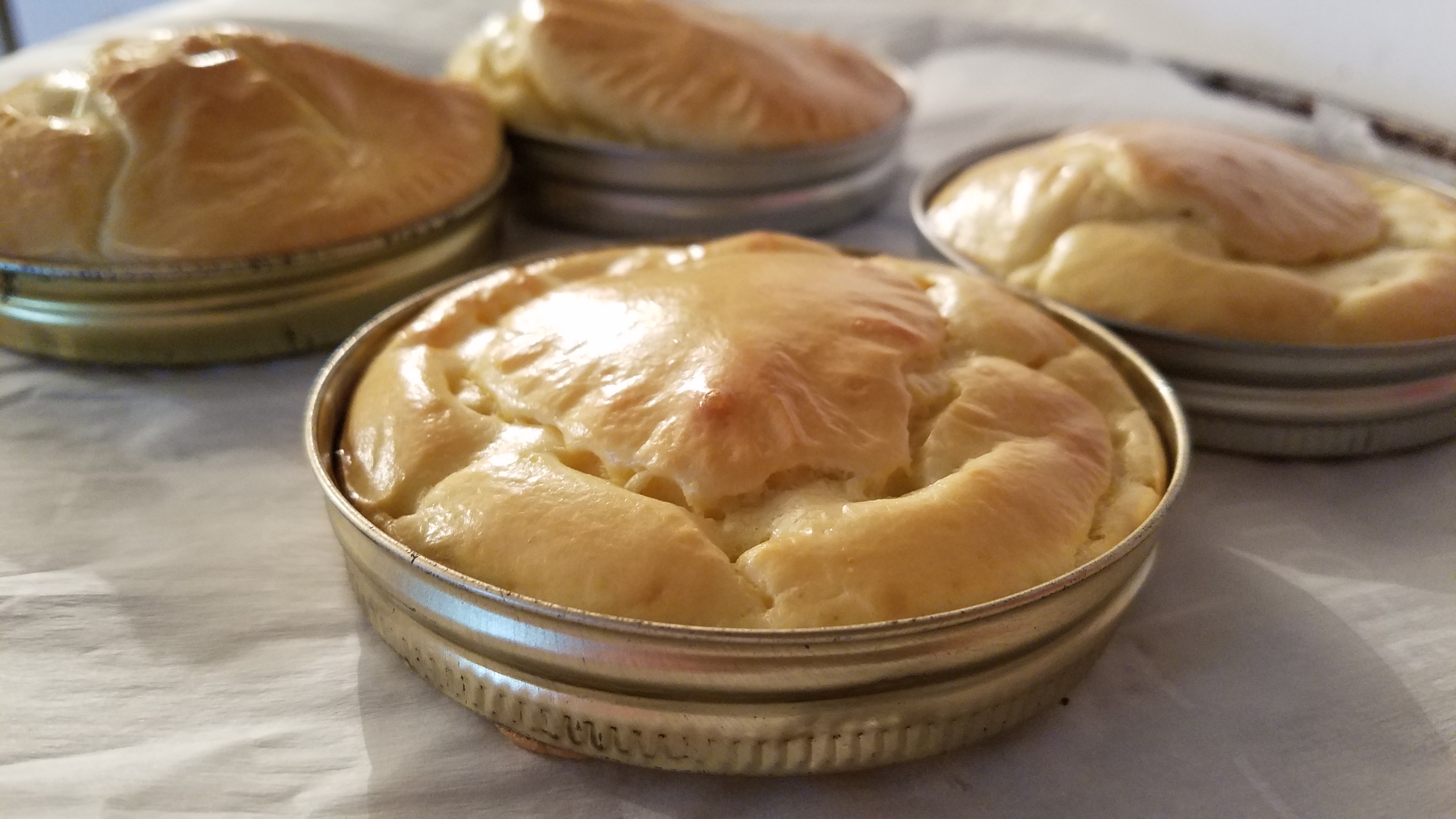 Let the batter sit 5 minutes to soak up the liquid, then fill the canning rings almost to the top (approximately 2-3 tbsp per lid).