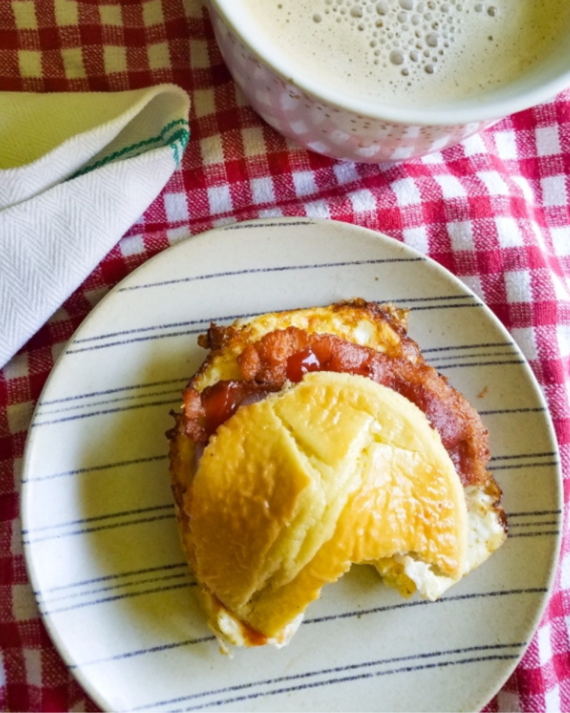 • When you make the meat for the sandwich, leave the grease in the pan so it makes it easier to remove the cooked egg. Using a nonstick skillet may also work, but I prefer using my cast iron skillet with the meat grease. It adds so much flavor as well!