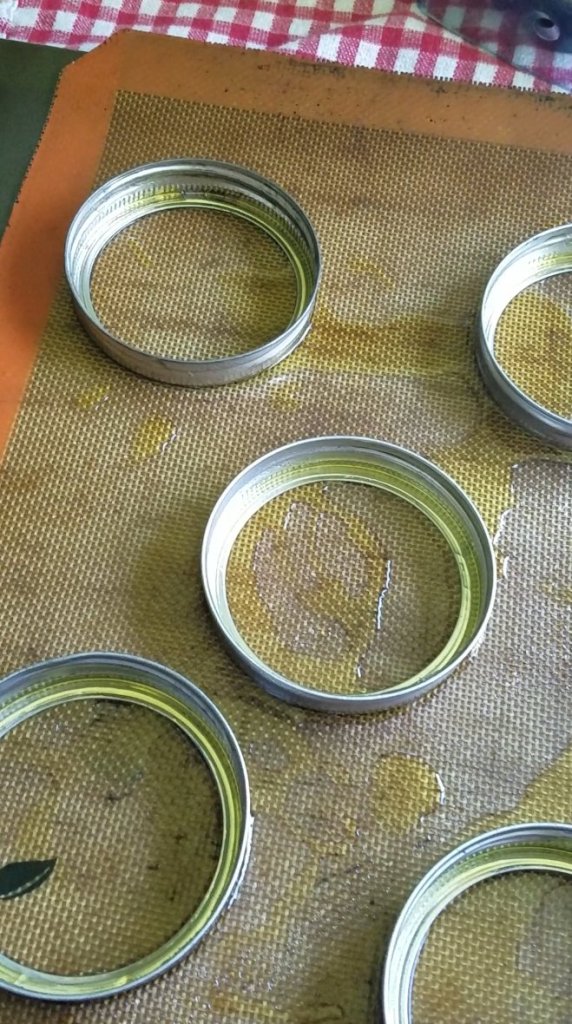 Now, with a pastry brush, brush coconut oil into the inside of each canning ring.