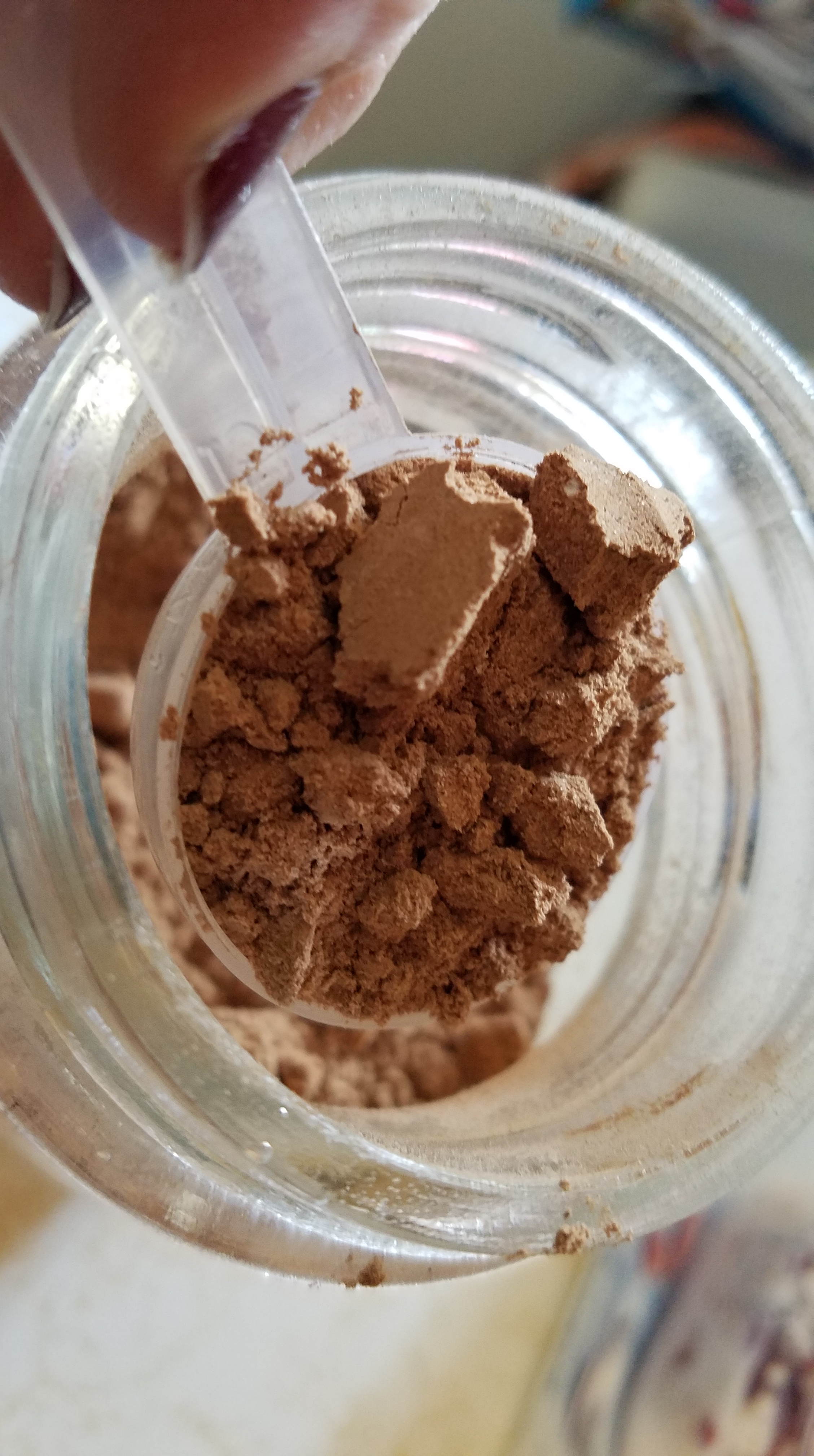 Here I combine cocoa powder, monkfruit, stevia, & Bob’s Red Mill whey powder in the blender!