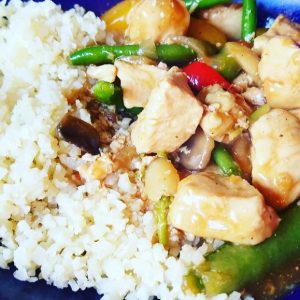 - Add veggies back in and toss to coat. Continue to cook for 2 minutes. Serve over cauliflower rice or alone.