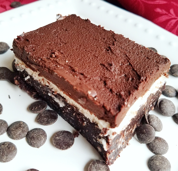 It is one of those bars that is very rich and very sweet! The chocolate that sandwiches the vanilla pudding kissed center is hard to forget! Plus the coconut in the bottom layer really adds great texture!