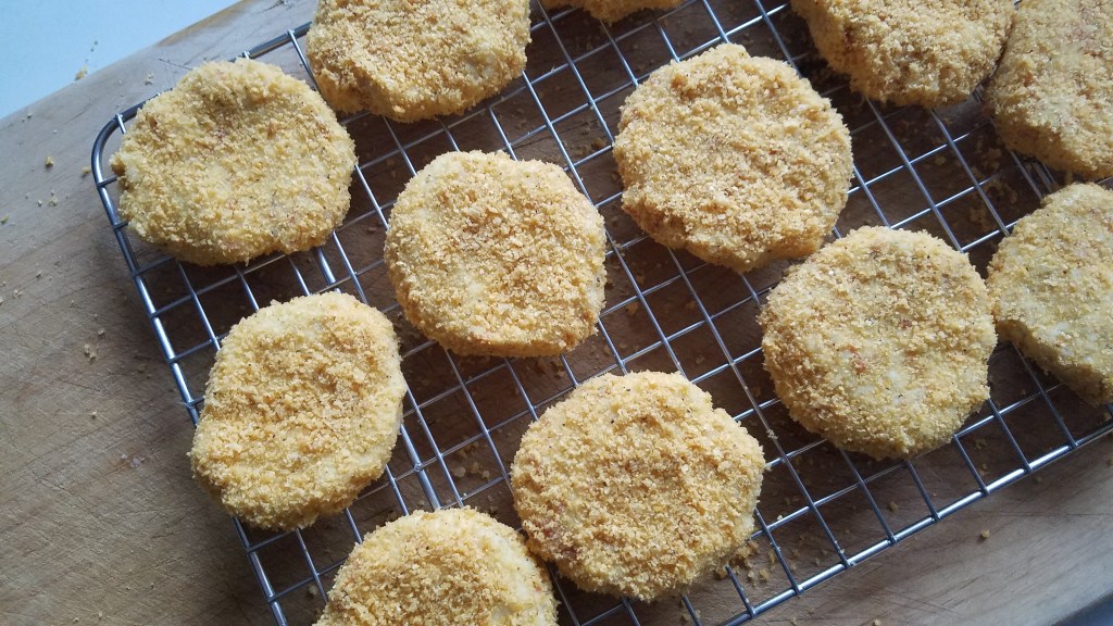 - Scoop out in 2 tbsp amounts, pat into a nugget shape.