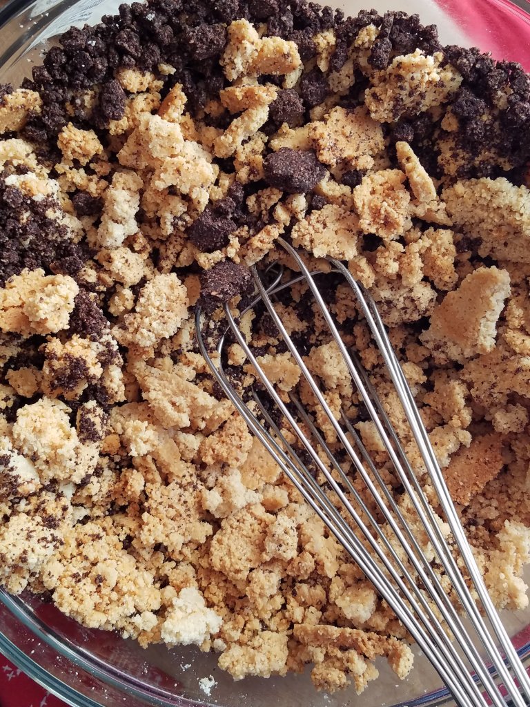 Now add the cereal back to the large bowl and add in the whisked egg whites and any dry additions you may want to add such as crunchy mini keto chocolate cookies like I did with this delicious recipe!