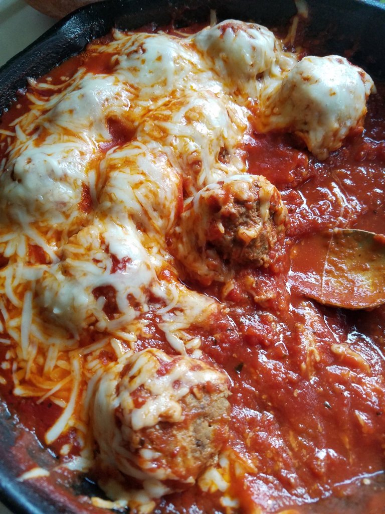 Can I prepare this in the Instant pot next time? Yes, you can! Just brown up the meatballs with some olive oil on the sauté mode until browned. Add a bit of sauce to the bottom of the pot so you do not get a burn message. Then add in the rest of the tomato sauce and cheese and cook at HIGH pressure for 5 minutes. Do a natural release. Let it sit for 10 minutes uncovered to thicken up a bit.