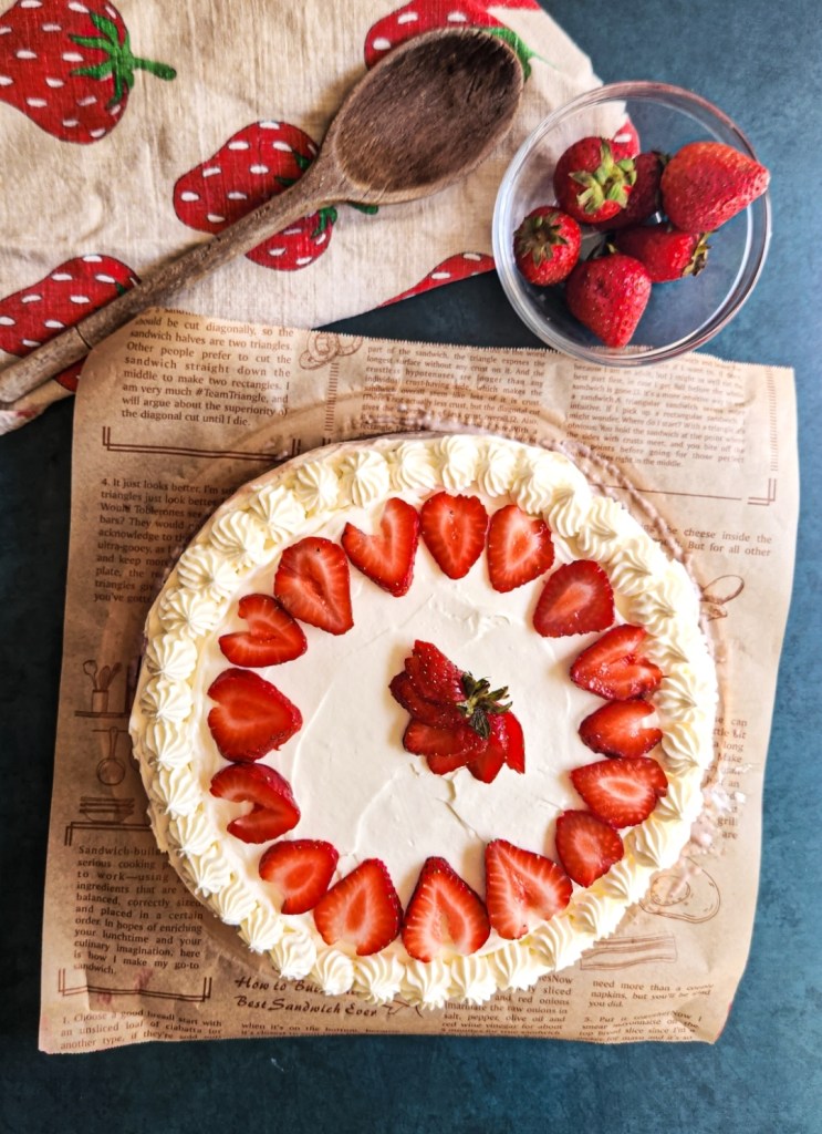 • If you want to use a different cake recipe, you can substitute in a strawberry cake mix prepared for extra strawberry flavor. If you want to make it from scratch, here is my recipe for a Gluten Free Strawberry Cake that turns out amazing!