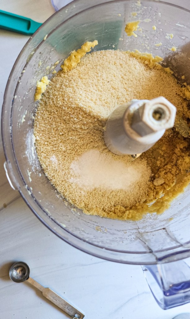 - Try purchasing an almond flour blend that includes finely ground almond flour if you want to try the stand mixer way. You will take the Nutiva Shortening and cream it with the sweeteners first. Then add in the extracts and egg. Once combined add in the dry mixture and proceed with the recipe as listed.