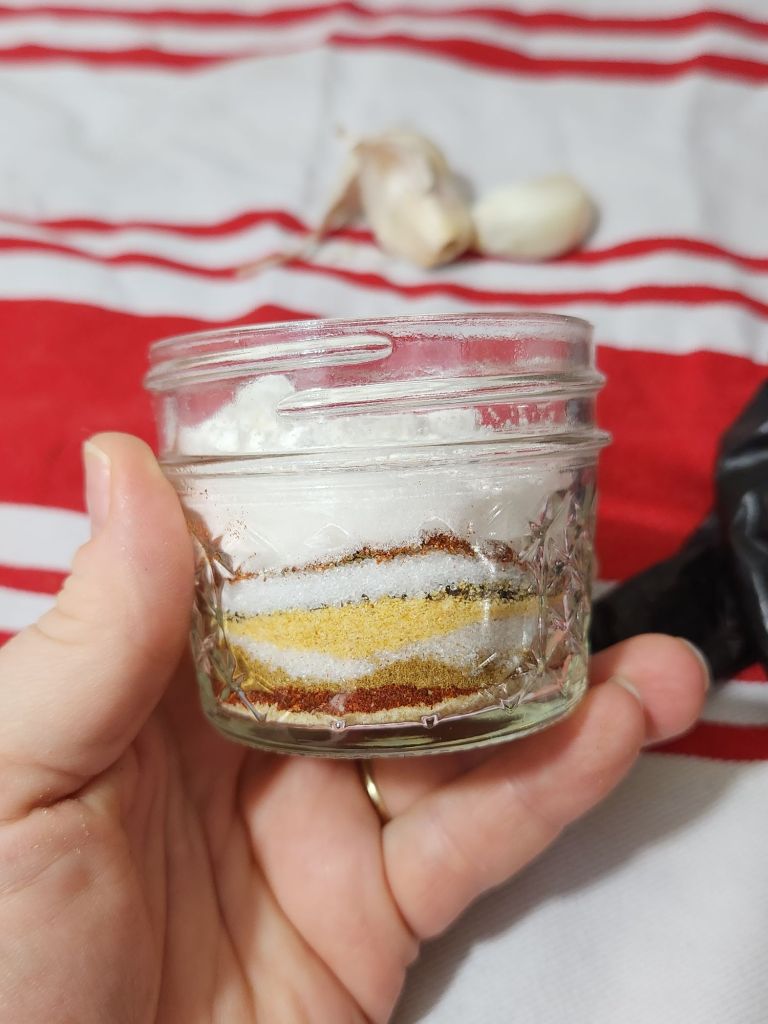 - Get your airtight jar you will be storing your seasoning in and measure right into it.